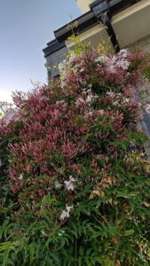 久しぶりに大量の蕾を付けた羽衣ジャスミン。 ここしばらく変な時期に私が刈り込んでたので 花があんまり咲かず、新月サンには 「物足りない・・・」と言われる始末。 (咲いたら咲いたで「臭い」って言うくせにー) 真っ白のモサモサが見られるまで、あと少し。