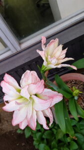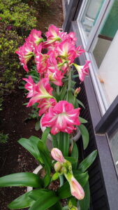 ゴールデンウイークちゅうに咲き始めてたアマリリス。 明けて出社したら盛りが過ぎそうな勢いで・・・ あいかわらずピンクだらけ。 手前のつぼみは遅れて咲いて、薄茶色でした。 ←この写真だと奥になって隠れているもう一鉢も ちまっと咲いてます。