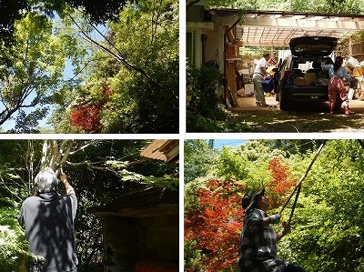 これでもだいぶ風通しが良くなり、固定された木陰以外に陽がさすようになりました。上の写真の左上が従前の風景です。もう少し頑張れば家屋にかかっている枝葉をすべて取り除けたのですが、あとの作業は来月まで持ち越します。