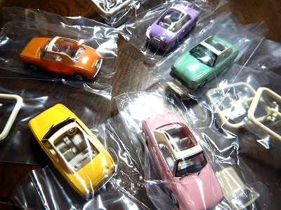 カプセルトイの第二弾で一個以外第一弾の色違い。ドアミラーを取りつけなくてはなりませんがピンセットと接着剤無しでは太刀打ちできない。