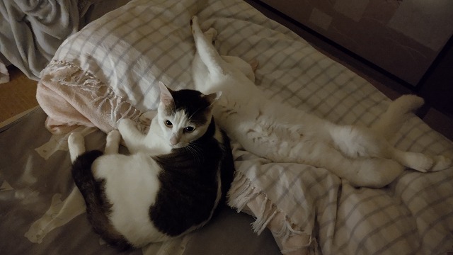先に寝室入って寝始めたゆき。 確か、私が行った時は普通に香箱組んでたはず・・・ ちょっと目を離したら、お腹だして伸びてました。 義弟んちのチビも、そのうちこうなるのかしら。