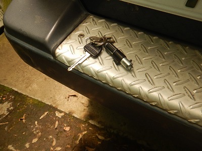 そして土曜日のこと。歯医者に出かけるために一度車庫に赴いたところ、幌の左後部が外れかかっているのでこれを直そうとデッキトップとリアスクリーンを外そうとしたらファスナーの固着で動かない。CRCを取りに行くためキーをこんなところに置いたまま家の中に入り、そのこと自体をすっかり忘れて別の鍵束を持って車庫に戻ったら歯医者の予約時刻が迫って作業している時間が無くなり、まったく気づかぬまま歯医者まで片道3キロを行き来していたのです。