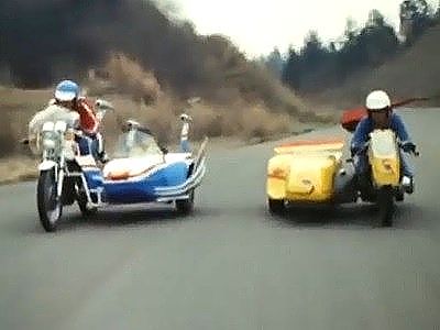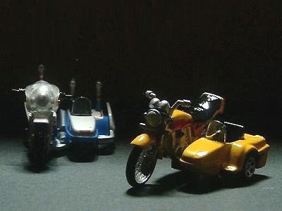 有名な逸話ですが、01用のダブルマシンは、前作でジローが乗っていたサイドカーの改造でした。ジロー再登場の際には同じものを作り直すより、キカイダーとして扱っていたサイドマシンの方が絶対に価値がある。と、サイドマシンのベースになった車体のことを考えてもそういう流れがあったのだと思われます。だから左図のようなことはあり得ないんですが、僕は3台のどれが好きかと言えば、サイドカーのベース、カワサキ250SS・マッハⅠなのです。