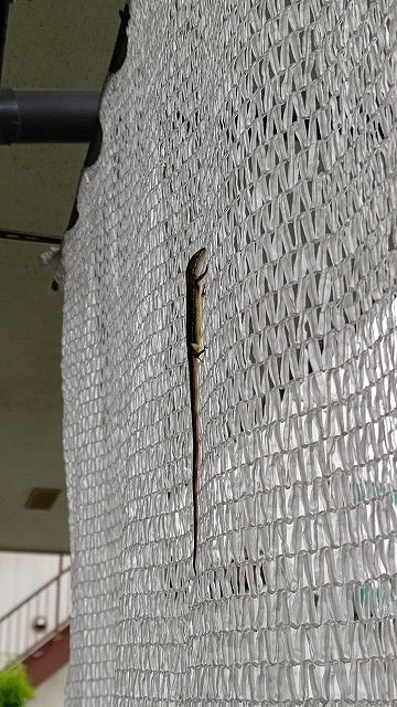 リビングの掃き出し窓に垂らしている日よけに ナニか動く影があるなと思ったら、カナヘビでした。 ヤモリがくっついてた事はあるけど、カナヘビは 初めてだわ・・・ 猫ずは暑さで伸びてたので、カナヘビは気づかれる事も無く その後無事にどこかへ去っていきました。