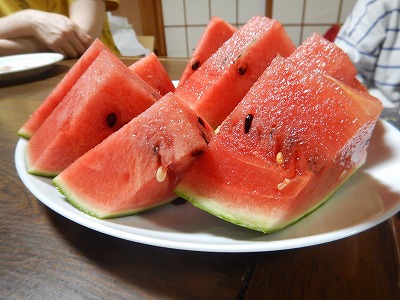 とかいって今年は図々しくも「来ない方がいいよ」と予告はしてまして、言ったからには暑気払いも予告通りやらせていただいております。まあ誰も来ないよこんなイベント(笑)。それでも初物のスイカは糖度11を超える満足の甘さでしたよ。