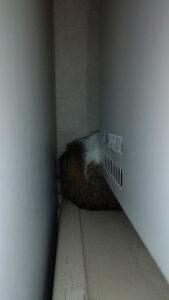 修理屋さんが来たあと。 見えるところで固まるいち。 ゆきは私の部屋の本棚にもぐっちゃったし。 はなは・・・どこ? そしてでんは閉じ込められたリビングで おろおろと右往左往(笑)