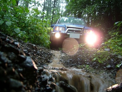 林道へ出かけるのは、そんなパターンよりも山間部まで遠出していくケースが普通なので、現地で走行不能に陥る可能性と確立は、大雨の前後もあわせて考えておかないといけません。とはいえ天候情報と道路情報をつき合わせることくらいしか、すぐにはできないので、こりゃいかんなと感じたら安全策をとって「行かない」と英断できるかどうかなのですが。