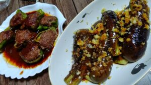庭で採れたピーマンとナス。 まあ、焼いただけなんだけど(笑) 採れたては旨し♪