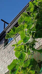 一本だけ細々と残ったって言ったキュウリですが。 ここにきてやる気出したんだか、子蔓がわらわらと・・・ そんな高い所で伸びられてもなぁ。 ここで実が生っても新月サン届くかな。 (多分ギリギリ)