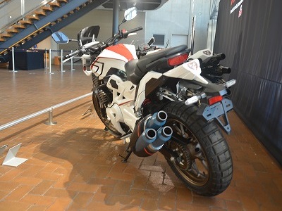 映画においてはラストシーンのわずかな時間しか出てこなかった「シンサイクロン」を、模型やら玩具やらよりも早く現物で観ることができたのは嬉しかったのですが、カラーリングが意外と僕の趣味ではないのと、フロントカウルのデザインがケレン味出しすぎで、四ツ目のサイクロン同様、作家性の問題はあるなあと感じました。それはともかく、CB250Rがベースのこのバイク、常用サイクロンと同じなのに想像以上にコンパクトです。