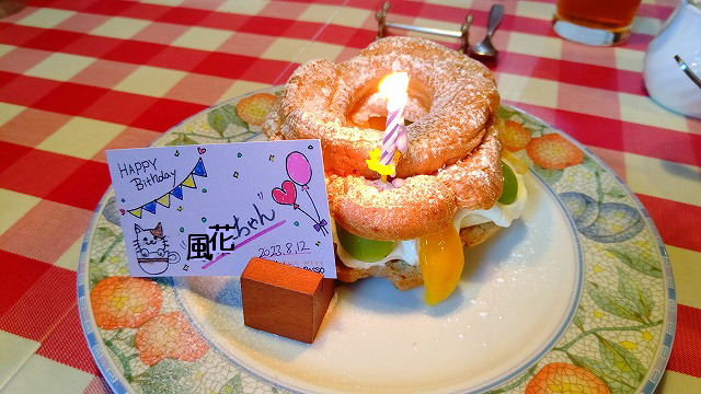 友人宅の最寄り駅で落ち合って 予約してもらったイタリアンのお店へ。 おしゃべりしながらすすむワイン(笑) お腹いっぱいだーと言っていたら デザートで出てきたケーキにお祝いのカードが! 予想もしていなかったのでビックリ。 いくつになっても「おめでと!」って 言ってくれる友人夫婦に感謝❤