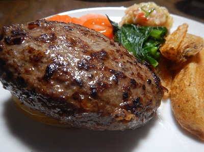 EМО飼育とやらで化学肥料などを用いない有田牧畜産業自慢の牛だとか。その肉を使い、玉子を用いずパン粉のみで作ったというハンバーグが詰まっておりました。