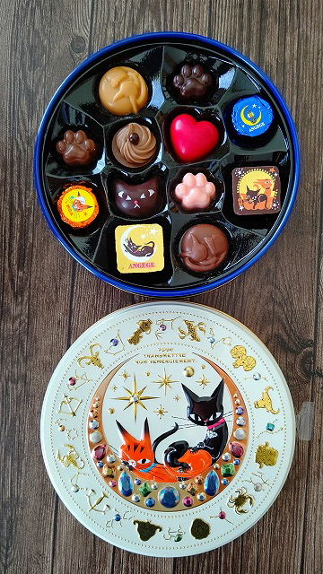 先日の黒猫チョコですが。 ひとつ試しに開けてみたら、あったわ〝尻尾〟 猫がくるんとまるまってるデザインのチョコ 長ーい尻尾がくるんって・・・ 肉球と猫の顔は今までもあったけど このデザイン、去年までは無かったぞ・・・