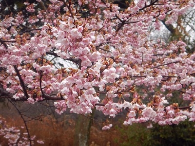数日前から、麓からでも彩が分かるくらいになっていたので行ってみたら、天狗の森の二番桜も満開になっていました。木曜日にたっぷりと雨が降りましたから、このあとソメイヨシノも蕾が膨らんでくると思われます。奥の方の三番桜もだいぶ咲いていますが、山全域でなくここにだけ河津があるのはなんというか謎です。
