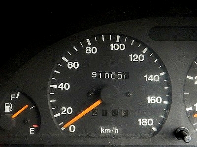 この日、この桜の下で910000キロを記録しました。が、下で、というわけにはいかず、なんだかすべての窓をカーテンやら段ボールやらで遮蔽している車が停めてあったため、それを隠すアングルで撮影するしかありませんでした。隠しきれていなかったぜちくしょー。