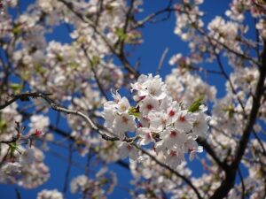 満開の桜。風に吹かれてハラハラと散る花弁。 中心が赤くなってきたから、もうすぐ散っちゃうわね。 綺麗な写真が撮れて良かった。
