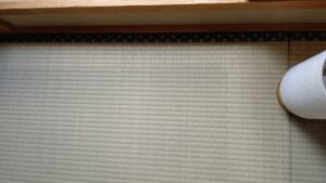 新しい畳になって、まだ2週間だというのに もう焼けて色が変わってますー・・・ すのこの上に敷きっぱなしの布団の跡が! もうタープ張らないとダメ??