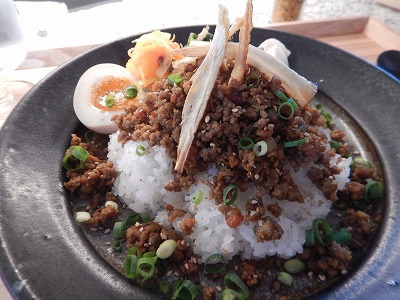 これは4月末のお話なので、もう完成しているかもしれません。ATAGO FOREST HOUSでもカレーライスが食えるようになるのです(ほんと、まじめに仕事してるのかよ俺)。きんぴらをベースとしたキーマカレーを、このときは試作しておりました。厨房の設備の関係から炊飯量に難ありで1日の何食か限定になりそうですが、「よそには無いものを出したいから」と店主も調理のお姉さんもはりきっています。