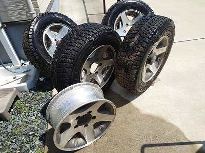 SIDEKICKさんはこの日、TD61W用のアルミホイールを届けてくれました。これは俗に「11系用アルミ」と呼ばれますが、実は51系が登場した時のカタログにおいて、61Wにはこのホイールを取り付けたものが使われているので、「V6・ディーゼル系」と呼んでもいいのかもしれません。今頃話題にもならない話題ですが、クロさんの新しいクルマが情報解禁されるまで待ってたので遅くなっちゃいました。え?まだ解禁前? そういうことなら12日の主役にしちゃおう!
