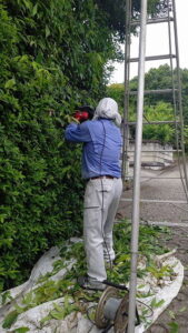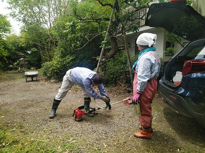 芝刈り日本ゴルフツアー選手権の最終日が賑わっている中、こちらの山のつくばーど基地では毎年恒例、新月・風花夫妻に手伝ってもらいながらの草刈と生垣の刈り込みが行われていました。例によって僕が一番役立たずなんですが、それでも彼らが来るまでは、朝から電動刈払機に振り回されながら前庭の繁茂と格闘し、低木の枝打ちを進め、集合時間には腕も上がらない状態になっておりました。