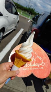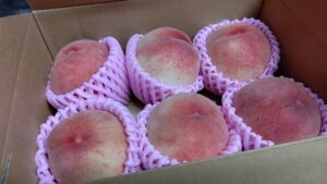 桃を買った農園の駐車場にて。 ネットで仕切られた向こう側は 桃じゃなくて梨畑でした。 新月サンがわふわふしてましたよ(笑)