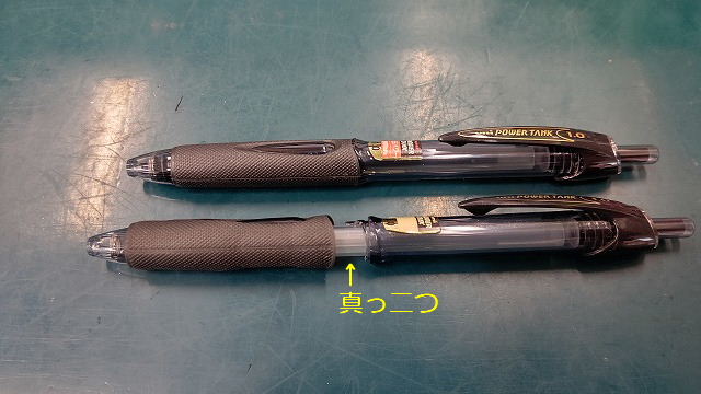 義弟の事笑えない・・・(圧・・・?) 同じ事したよ私(汗) ナンか最近書きづらいなーと思って。 グリップのラバー捲ってみたらば 辛うじて繋がっていた部分が そりゃあ見事にボッキリと・・・ 帳簿つけるのに使ってるボールペンなので 慌てて新しいの買いました。