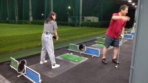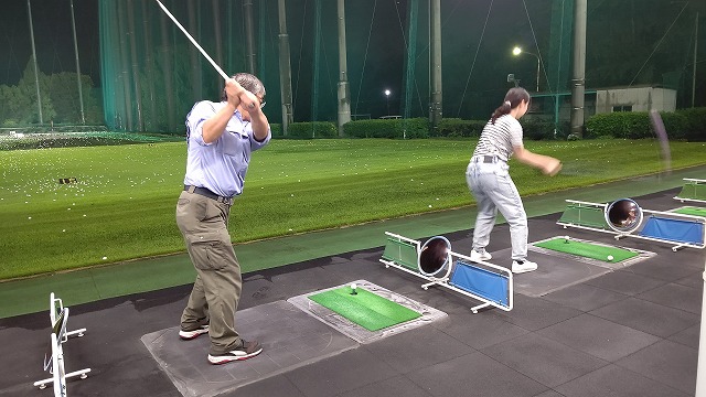 義弟2号が突然「風花さんゴルフクラブ持ってる?」 と言うので何事かと思ったら、娘にゴルフやってみたいからコースに連れて行けと言われたとか。 いきなりコースに連れてけとはなかなか豪胆な姪である(笑) 取りあえず練習場行ってみてクラブに当たってからの話だと新月サンに白羽の矢が飛んでいきました。 練習場で待ち合わせして受付諸々済ませた後「どのクラブ振ってみたい?」と尋ねる新月サン。 彼女が迷いなく「これっ!!」とバッグから抜いたのはドライバーでしたよ。 ・・・すげー・・・(私、未だにまともに当たらない・・・) 途中義弟1号が野次馬しにやって来て、ドライバー振り回してる姿見て驚いてたわ。 生まれて初めてクラブ握って、ちゃんと前に飛ぶ(転がる)ってスゲーって。 そのうち転がるから飛ぶに変わってきて、気づいたら2時間。 初めてだからと1球いくらで打ってたんだけど、結果的には打ち放題の方が良かったのでは・・・?