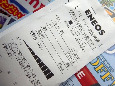 給油に行った行きつけのスタンドで出てきたテスター結果が左の伝票。劣化がかなり進んでいるとか書かれている。「これ入れたの3年以上前ですよ」とも。