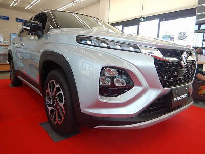 スズキフロンクスの先行展示会に出かけてきました。自販の開店時間前からお客さん大勢です。展示会なのでショールームのど真ん中に鎮座しており、乗れても走らせられません。置いてあったのはプロトタイプでFF版と思われますが聞いてみるとリッター19キロくらいだとか。主治医のところでナビについて吹聴していった営業マンは後で絞めることになり、「1グレードなので全車ナビ装備です」と確認できました。たぶんFFと四駆の価格差と勘違いしていたのではないかと考えます。