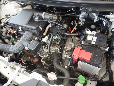 エンジンルームはクラッシャブルゾーンを兼ねているようで、すかすかです。1500ccの6速ATで四駆はトルク不足だと言われているようですが、タイヤの60扁平が良くないんじゃないかと感じます。これは二代目エスクードで標準だった65扁平を70にしただけでも改善できたことを思い出します。基本的には日本仕様だというし、スイフトのエンジンでもあるため、国産のバッテリーを積めるよね?と問い合わせましたがまだレクチャ不足で「すみません、わかりません」