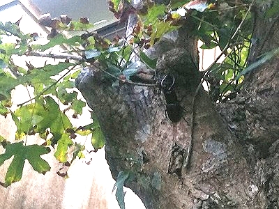 そんな真夏の・・・って立秋のこと書いてるのに、真夏の風情というか、基地の紅葉の樹液を求めてやってきたノコギリクワガタのなんと立派な体躯。子供の頃のカブト、クワガタ獲りでもこんなに大きなやつはめったにお目にかかれませんでした。