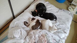 はい、寒いのね。 この私が布団掛けようと思うンだから涼しいよ。 で、寝ようと寝室に行ったらこの状態。 足を伸ばすどころか寝る隙間もありませんが?