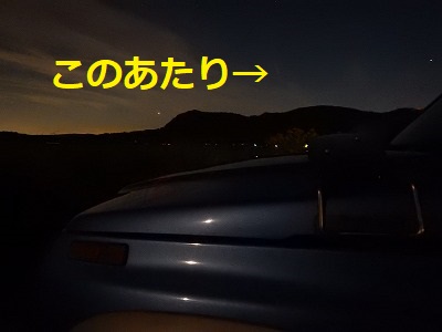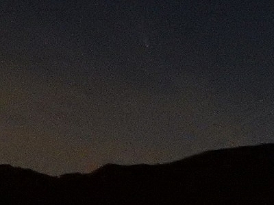わかんねーなーと画像を拡大したところ、もうこれ画面のもやれレベルかレンズ付着のごみか? と思っちゃうような儚げな尾っぽが見つかりました。左手の稜線が落ち込むところに金星があるので間違いないでしょう。