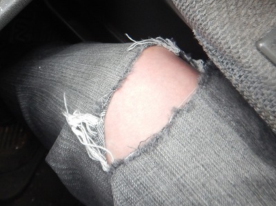 この膝、二年前にも扱っているんですが、だいぶ裂けましたねー。