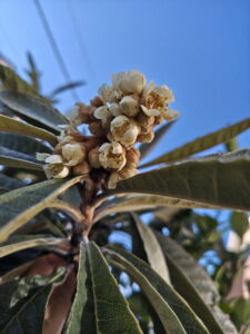 枇杷の花が咲き始めました。 去年に続いてみっちりとついた蕾。(6~7本の枝先についてる) 去年は摘果しないでほっといたら適当に落ちて そこそこの量が採れたけど、今年は摘果してみようかな? 大きい実になると思う???