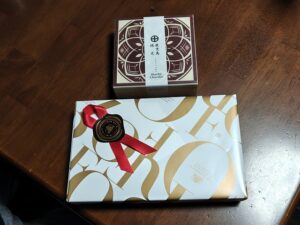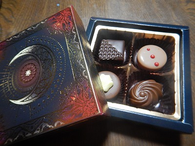 先日の食事会の時にそごうに寄って 友達の旦那さんと新月サンに買いました。 写真の上の方が私が選んだ〝焼酎ボンボン〟 鹿児島の焼酎だけセレクトした催事場限定品。 (限定に弱い・・・) 下は友達から新月サンへのチョコレート。 では、紅茶でも淹れましょうね。