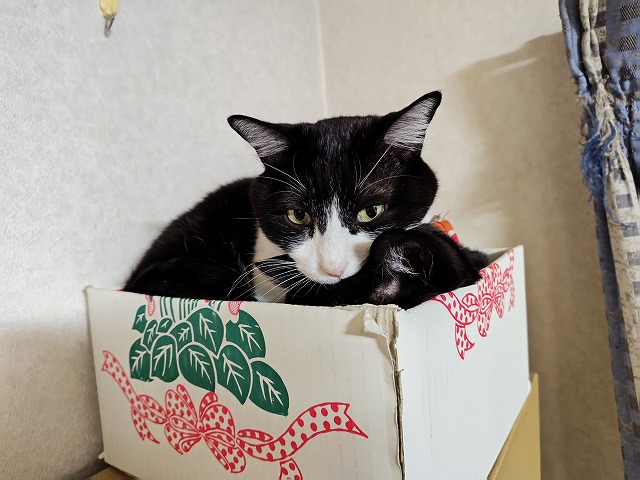 珍しく、なんちゃってキャットタワーに上ったでん。 まあ、ご飯も食べたしゆっくり寝たいのかしら? と、下から見上げてたいちが軽やかに駆け上がって でん踏みつけましたよ・・・ 眠いのか面倒くさいのかそのまま寝続けるでん。 いちが4kgちょっとって言ったって重いでしょうよ。