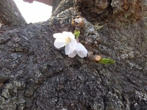 3月14日時点での大島桜(たぶん)は満開です。ソメイヨシノは・・・まだ蕾です(泣)