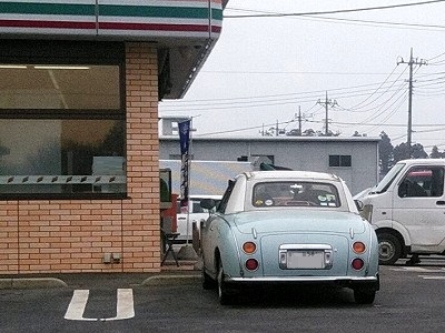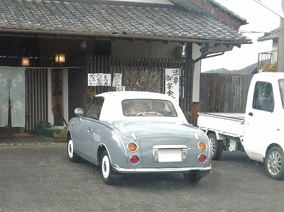 でもってそこから道のり1キロ程度の和食屋の軒先には別の個体が。こちらは二次ユーザーのようですが、霙のフィガロと同じ車体色にしてなかなかきれいなコンディション。