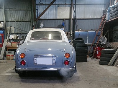 で、霙のフィガロはエンジンかからずバッテリーが上がるほど放置していないのに? と、ひとまずブースターでイグニッションしたもののアイドリング不調の不整脈状態。生ガスも吹き気味で、まさかバッテリーではなくエアフロメータあたりの故障?