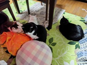 今宵もポンスコポンスコとエレドラ叩く新月サン。 練習用キットと違って打音はバスドラ (のペダル踏む音)くらいかな。 ヘッドホンつけて叩いてるので、マジ音はしません。 まあ叩くベシベシという音はするンですけどね。 「どんな感じで響くのか聞きたいから叩いて」と 新月サンがリビングへ。私がポコポコ叩いたら 「い、意外と響くんだね・・・」 そりゃそうでしょうよ、普通の木造建築なんだから。 (無論防音なぞ施されていない) 加えてペアガラスでもないアルミサッシの窓ガラス ですもの。外にも音漏れ漏れよーん。 で。猫ずは普通にご飯食べて寝てました。