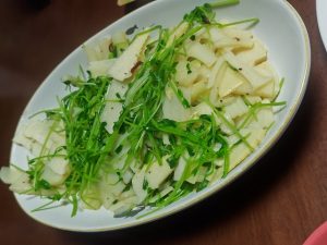 豆苗とタケノコを炒めて、味覇+胡椒で 味付けしただけの、どシンプルな一品。 今年は過去最高にタケノコご飯も炊いたしなー。 来年はもう少し控えめでお願いします・・・ (多分、送られてくるとしたら同じ量)