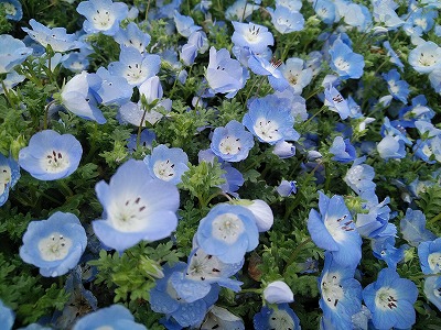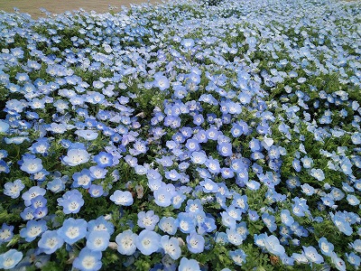 公園のネモフィラは自生ものではありません。毎年ピークが過ぎれば撤去され、秋のコキアに備えて丘の手入れが行われ、コキアが見ごろを閉じたら翌年用の植栽が行われます。国土交通省が珍しく国民に支持される風景を生み出しているのです。慕われすぎの人出で連休や週末なんぞに軽く見物にも行けなくなりました。だから実は、ここで挿絵にしているのはひたち海浜公園ではなかったりします。ずるしているかどうかはともかく、同じ瑠璃唐草ではあります。