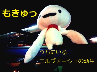 涅槃へ導く者という名前を持つニルヴァーシュは、単にロボットというものでもないようですが、その玩具に関してはまあ・・・さほど関心が湧かず手を出さなかった。ところがあるとき、リサイクルショップのぬいぐるみコーナーに「居やがった」んですよ映画版に出てくる幼生が。うわー!目が合っちゃったよ(そんなわけあるかい)ってんで300円支払って連れて帰ってきたのがもう10年以上前のことです。しかし幼生とか出てきちゃった映画版、もはやロボットじゃない。