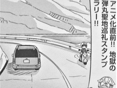 この漫画はまだ読んだことがありませんが、アニメ版の方で知りえた風景でした。「地獄の弾丸聖地巡礼スタンプラリー」とは、「mono」世界で「ゆるキャン△」(まったりキャンプ)がアニメ化されるといった展開に基づいています。