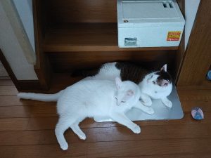 午後に様子見に帰ったらゆきはなが涼んでましたわ。