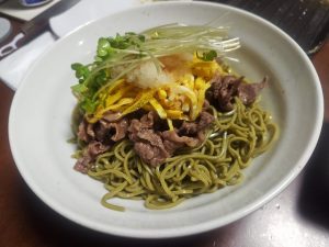 新月サンが泊りで居なかった時に 一人で近くの温泉へ。 帰ってからご飯作るのも面倒だし 時間も遅かったから、中で食べて帰りました。 で、その時食べた茶そばが美味しかったので 後日作ってみたんだけど・・・ 牛肉の味付けが微妙に違うんだよねー・・・