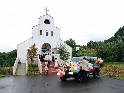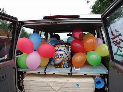 当然、新郎新婦のクルマは記念デコレーションして飾られたわけですが、我々は風船やらぬいぐるみやらで充分に恥ずかしい写真を撮れるぜと目論んでいたのに、荷室を開けたらペール缶が載っていた。ほら、新婚さんを送り出すとき、クルマの後ろに空き缶を引っ張らせてからころ音を立てるあれがあるじゃないですか。新郎、その斜め上を用意しておりました。まあランクル70だしなあ、ペール缶だよなあと、一同返り討ちにあったのです。