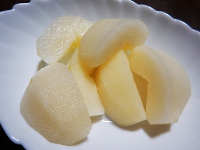 その直後、雫さんは半ば憤慨しながら「幸水いつおわっちっゃたのよーっ」と、いただきものだというのに豊水より幸水を逃したことについて独り言ちていました。昔と違ってどちらも旬は一か月くらい前倒しなのだよ。だから豊水がいまちょうどなのだよ・・・と言えども、近所の話では梨の出来も暑さ負けだそうで、そのなかで二十世紀と豊水は満足な味だとのことでした。確かにみずみずしくて程よい酸味と甘みです。