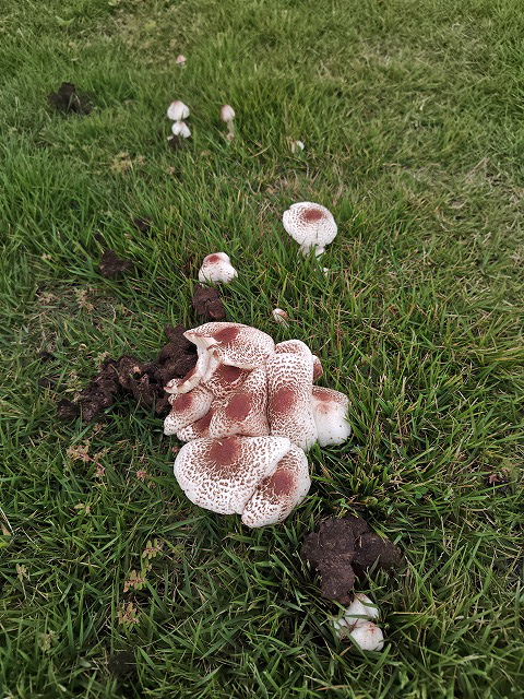 公園の芝生広場に大量のキノコ。 生えては枯れ生えては枯れ・・・ 今年は一種類しか見かけてないけど 他のキノコはこれからかしら?